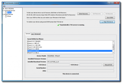 *Do not continue if TinyUmbrella’s TSS server is not started successfully.