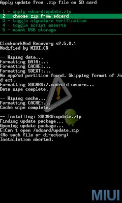 - In the main interface of Recovery, use trackball to select and click 5-install zip from sdcard, and then select 2-choose zip from sdcard