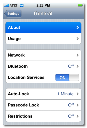Step Three: press to select About from the General Settings Menu.